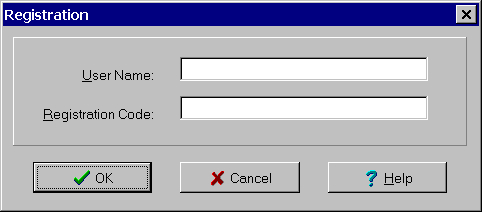 Registration Code edit box: The registration code provided must be entered exactly as provided. It consists entirely of digits and upper-case letters.