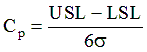 where USL is the upper specification limit, LSL is the lower specification limit and s is the standard deviation. Cp is independent of the units of measure.