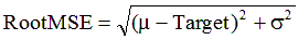 The root MSE is always greater than or equal to zero. It can only be zero if the average is on target and the standard deviation is zero. Minimizing the Root MSE drives the average to target with minimum variation. Minimizing the root MSE is equivalent to minimizing the Taguchi Loss.