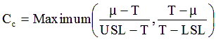 where USL is the upper specification limit, LSL is the lower specification limit, T is the target and m is the process average. Cc is independent of the units of measure.